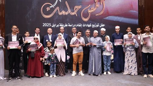 شهد المهندس عادل النجار محافظ الجيزة فعالية توزيع شهادات إتمام دراسة طريقة برايل 2025 ضمن مبادرة "إلمس حلمك" التي أطلقتها مؤسسة أخبار اليوم تحت رعاية وزارة التضامن الاجتماعي والهيئة المصرية العامة للصحافة، وبمشاركة الأزهر الشريف والبنك المصري لتنمية الصادرات.