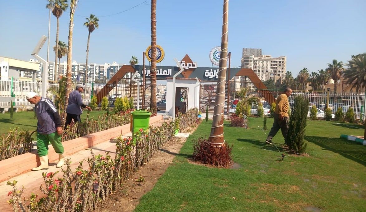 كما شملت المتابعة تجهيز الحدائق العامة لاستقبال المواطنين خلال الاحتفالات، وعلى رأسها حديقة لؤلؤة المنصورة، مع أعمال ري وقص وتهذيب الأشجار بالجزر الوسطى في شوارع الجيش وعبد السلام عارف وعدد من شوارع الحي.