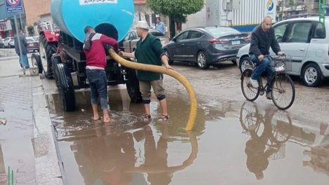 انتشار معدات و سيارات الكسح لإزالة آثار الأمطار