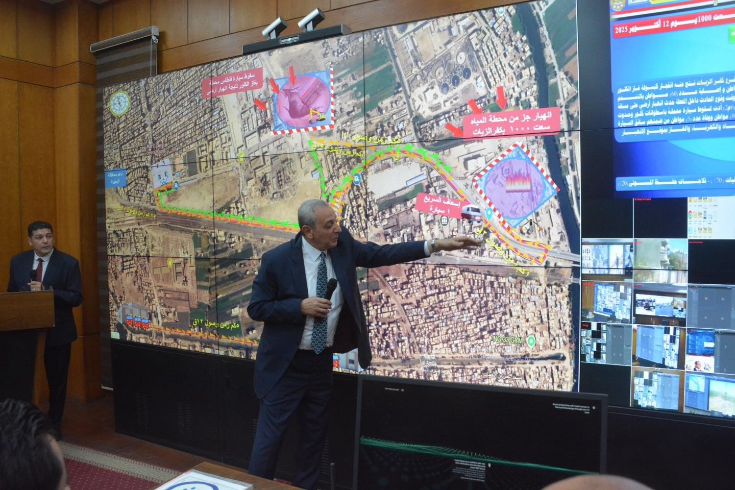 وأشار اللواء أشرف الجندي إلى أهمية منظومة الخرائط التفاعلية التي تُستخدم داخل مركز السيطرة، موضحًا أنها أداة رئيسية في إدارة الأزمات، تُمكن من متابعة الموقف لحظة بلحظة عبر الربط المباشر مع غرف العمليات الميدانية، مما يسهم في سرعة توجيه الموارد والإمكانيات إلى مواقع الأحداث وتقليل زمن الاستجابة، مع ضمان دقة التعامل مع المواقف الطارئة.