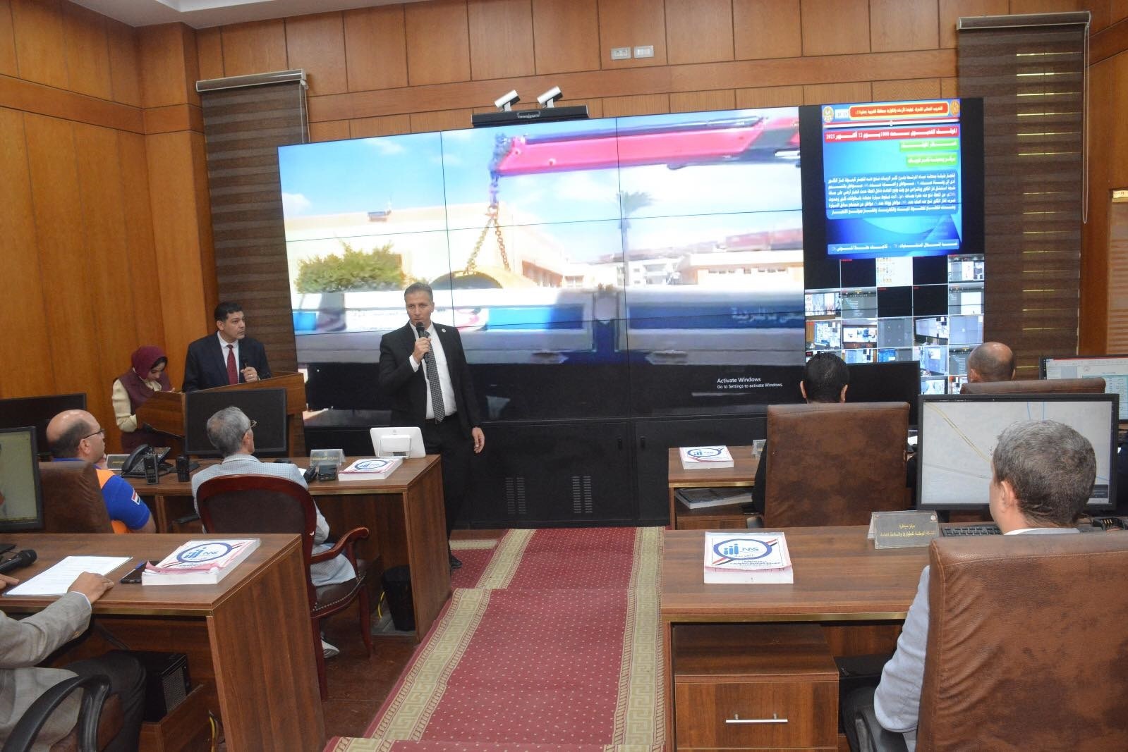 وخلال العرض، تابع المحافظ وقائد قوات الدفاع الشعبي والعسكري عبر بث حي من مركز السيطرة الموحد، عددًا من السيناريوهات الافتراضية التي تحاكي مواقف طارئة واقعية، من بينها تعرض إحدى محطات مياه الشرب لتلوث كيميائي، حيث تم استعراض آليات الاستجابة السريعة والتنسيق الفوري بين الجهات المعنية للسيطرة على الأزمة وتأمين الأهداف الحيوية، إضافة إلى إصدار البيانات الإعلامية الرسمية.