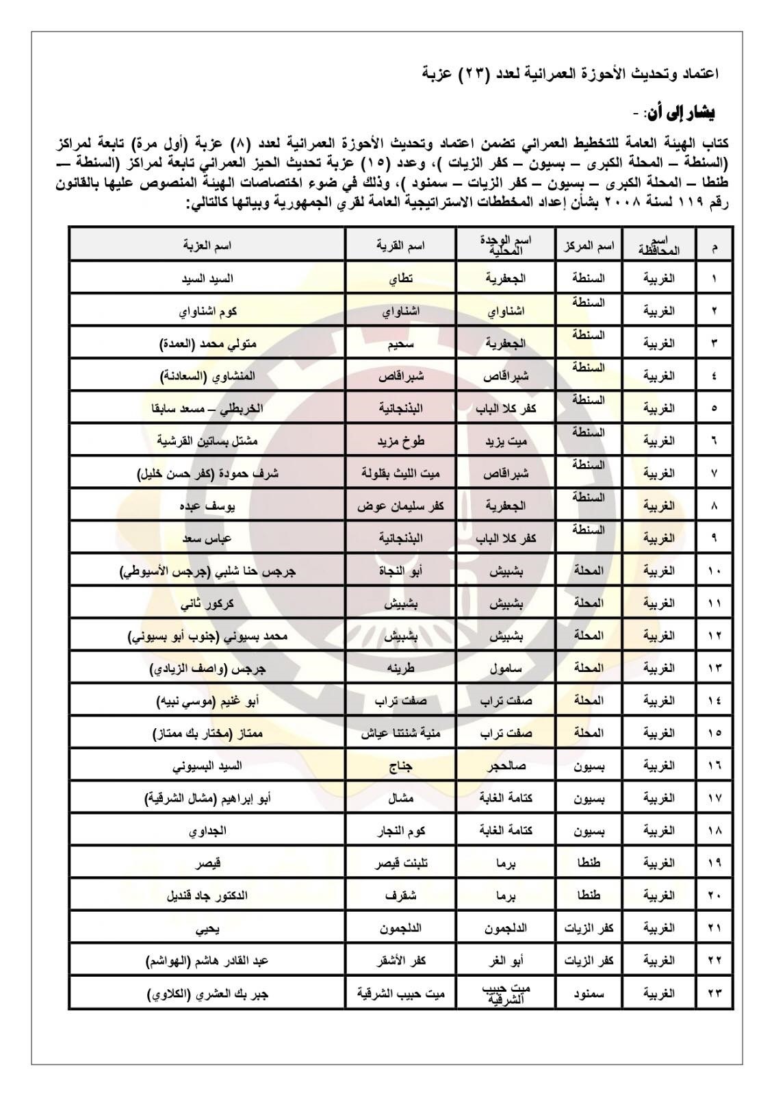 في خطوة مهمة نحو تحقيق التنمية العمرانية الشاملة، وافق المجلس التنفيذي لمحافظة الغربية، برئاسة أشرف الجندي محافظ الغربية، خلال اجتماعه اليوم السبت، على اعتماد الأحوزة العمرانية لعدد 36 عزبة بمختلف مراكز ومدن المحافظة، مما يمثل تقدمًا ملموسًا يسهم في تنظيم عملية البناء والتوسع العمراني بصورة مخططة تتماشى مع احتياجات المواطنين وخطط الدولة المستقبلية.