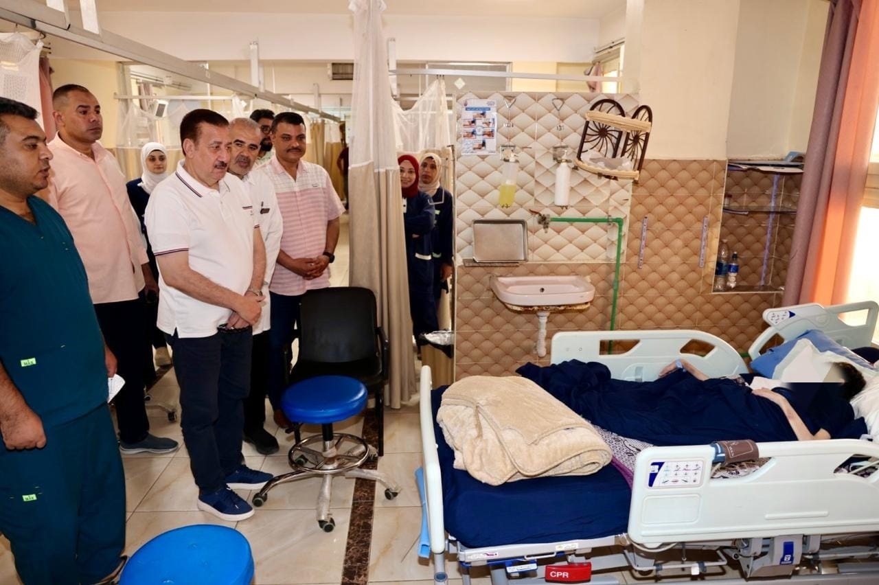 حيث تفقد المحافظ العناية المركزة وعيادة السكر والتغذية والمعمل وعدد من الأقسام الداخلية بالمستشفى، للتأكد من تقديم كافة أوجه والرعاية والإمكانيات الطبية والعلاجية اللازمة ، وأجرى حواراً مع عدد من المرضى اطمئن خلاله على مستوى الخدمات المقدمة لهم منذ دخولهم الاستقبال للوقوف على مدى التعامل الفوري ومتابعة الأطقم الطبية لضمان تقديم خدمة طبية أفضل كون قطاع الصحة أحد المحاور الرئيسية الهامة التي تقع على رأس منظومة العمل تنفيذاً لتوجيهات القيادة السياسية.