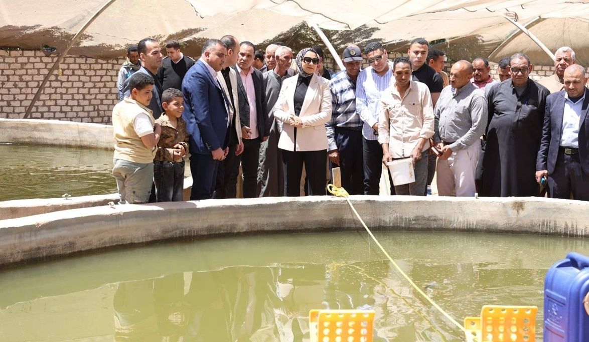 حيث تفقدت مقومات المزرعة السمكية المقامة على مساحة 12 فدانًا، ويعمل وفق منظومة إنتاج تكاملي بإنتاجية تصل إلى 40 طنًا من أسماك البلطي، مع تطبيق نظم إعادة تدوير المياه لاستخدامها في ري 9 صوب زراعية، كما اطلعت على مراحل التشغيل بدءًا من تحضين الزريعة وحتى بلوغ الحجم التسويقي؛ مؤكدةً أهمية التوسع في هذا النمط الإنتاجي كمصدر لزيادة المعروض من البروتين الحيواني.