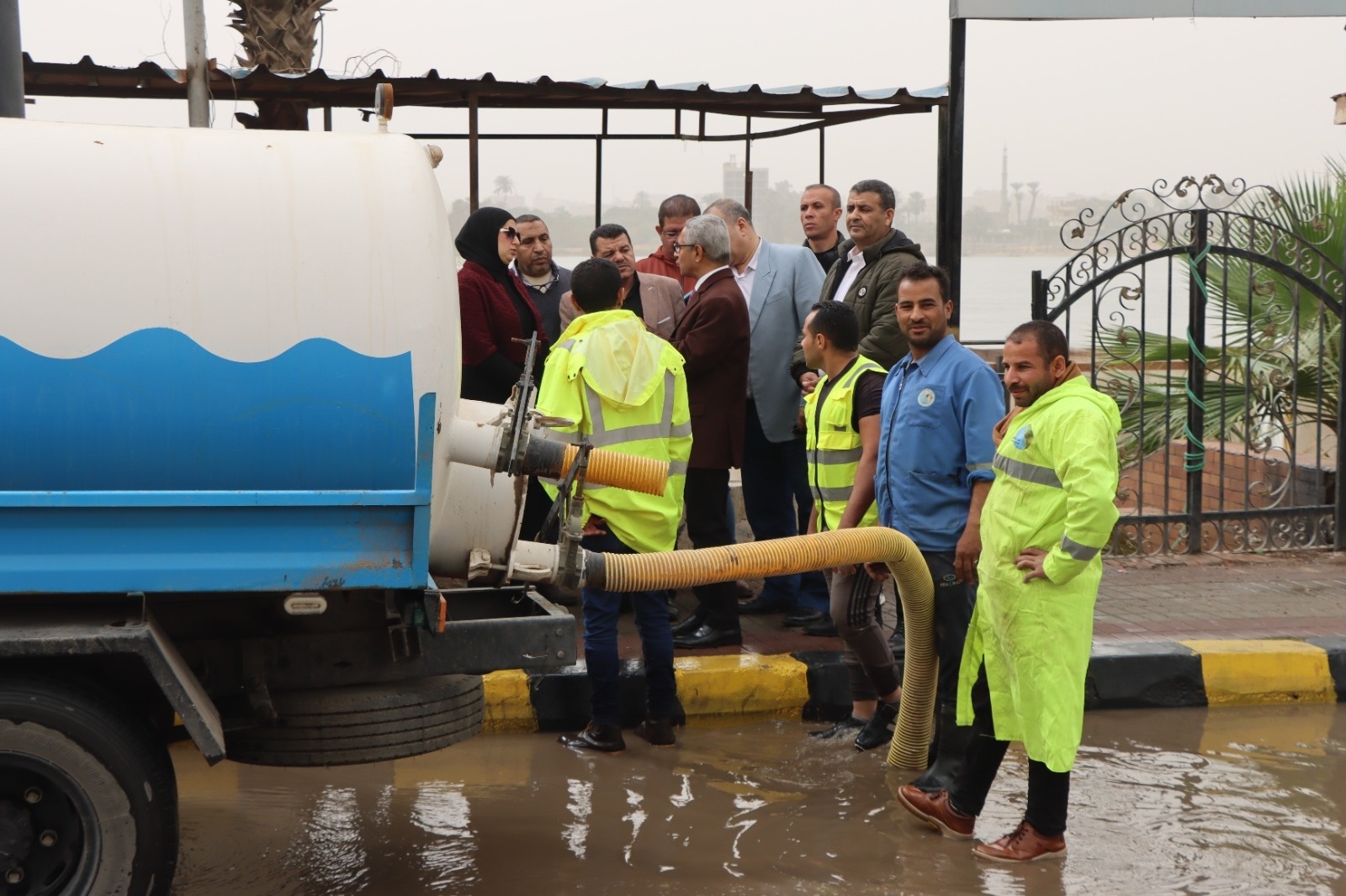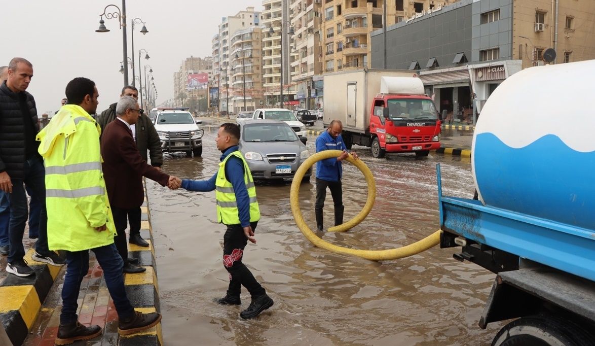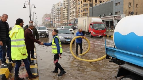 وخلال جولته، تفقد المحافظ الحالة العامة بالشوارع، واطمأن على انتظام أعمال رفع وشفط مياه الأمطار، حيث تابع جانبًا من الأعمال التي تنفذها فرق شركة مياه الشرب والصرف الصحي، والوحدات المحلية، بالتنسيق مع الحماية المدنية والمرور وكافة الجهات المعنية، للتعامل الفوري مع أي تجمعات مائية.