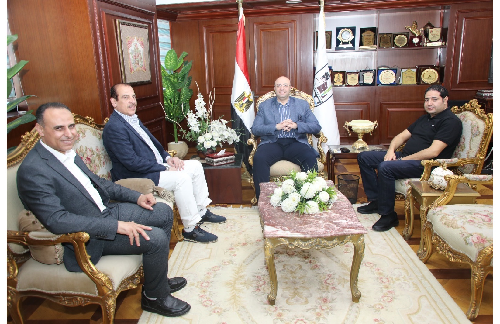 حضر اللقاء كل من السيد "بلال حبش" نائب المحافظ، والدكتور هاني جميعة وكيل وزارة الصحة، والأستاذ أحمد دسوقي مدير مكتب المحافظ.