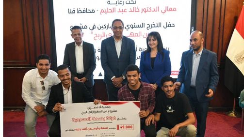 شهد الدكتور خالد عبدالحليم محافظ قنا، حفل تخرج الدفعة الأولى من مشروع "من المهارة إلى الربح" الذي نظمته جمعية أنا مصري للتنمية، بحضور مجدي نجيب وكيل وزارة التضامن الاجتماعي بقنا، والدكتورة نجلاء بخوم عضو مجلس النواب ورئيس مجلس إدارة الجمعية، وعدد من القيادات التنفيذية والشباب المشاركين بالمشروع.