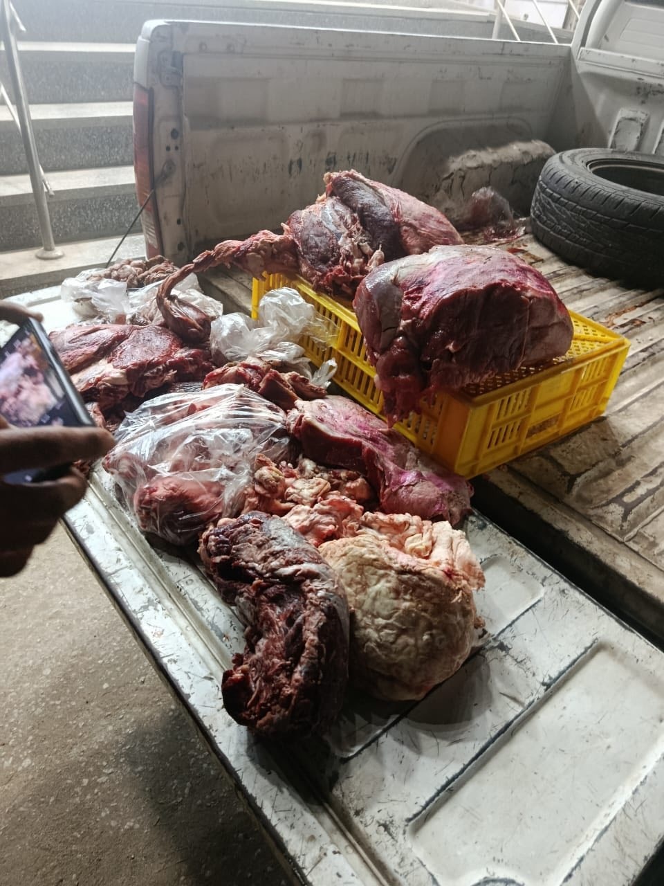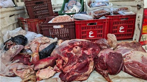 للتقارير الطبية البيطرية، داخل أحد المطاعم.30 كجم من اللحوم السودانية الفاسدة وغير الصالحة للاستهلاك الآدمي بأحد محلات بيع اللحوم في ناحيه إبشواي، بعد الكشف البيطري.
