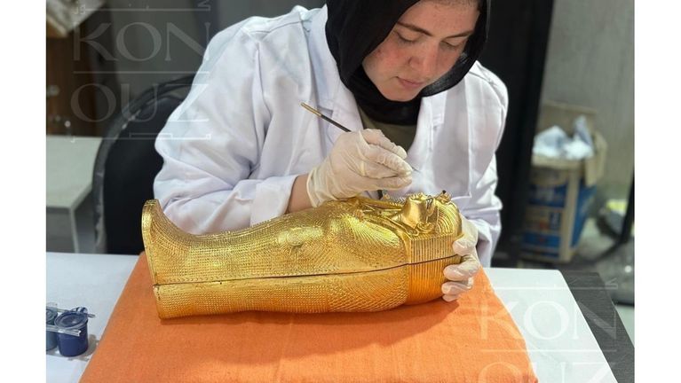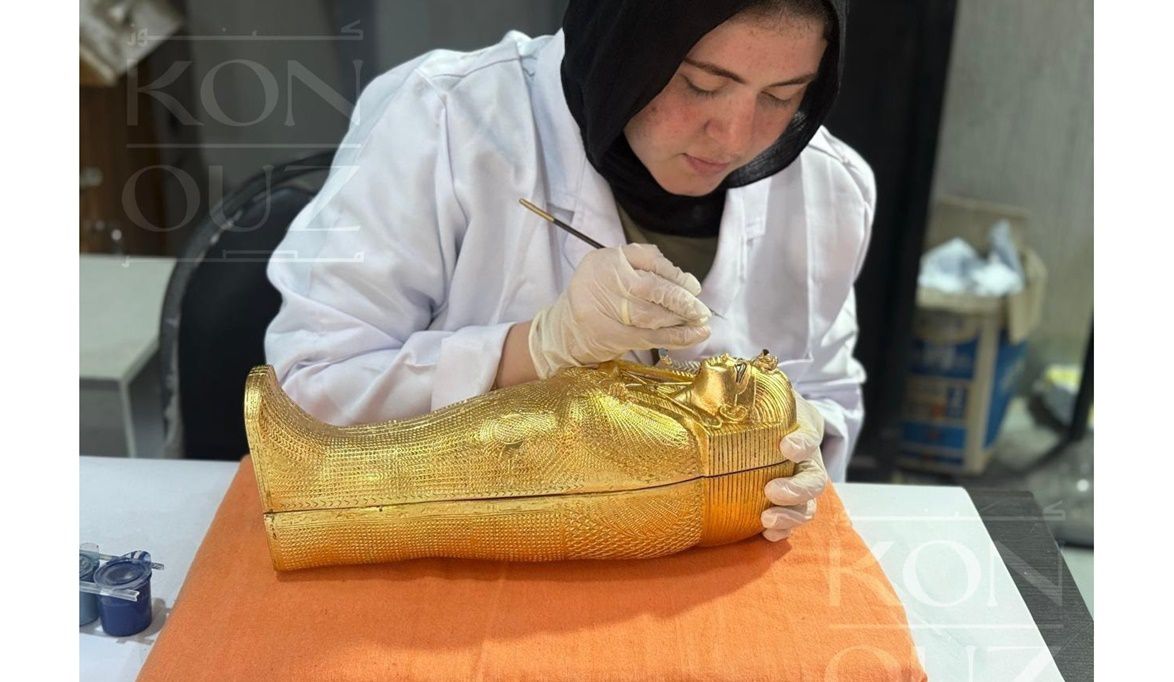 وأوضح اللواء هشام شعراوي رئيس مجلس إدارة شركة كنوز مصر للنماذج الأثرية، أن تصميم الدعوة مر بعدة مراحل دقيقة تعكس حساسية العمل الفني المُستمد من إرث مصر الحضاري، بدأت العملية من قسم النحت، حيث تولّى الفنانون تجسيد الزخارف والرموز والكتابات الهيروغليفية بدقة التماثل الأصلية، ثم انتقلت إلى مراحل الاستنساخ فـالتذهيب فـالتلوين، قبل أن يُغلّف التابوت من الداخل بقماش المخمل الفاخر، لتظهر في صورتها النهائية التي تليق بعظمة الاحتفالية ومكانة المتحف.