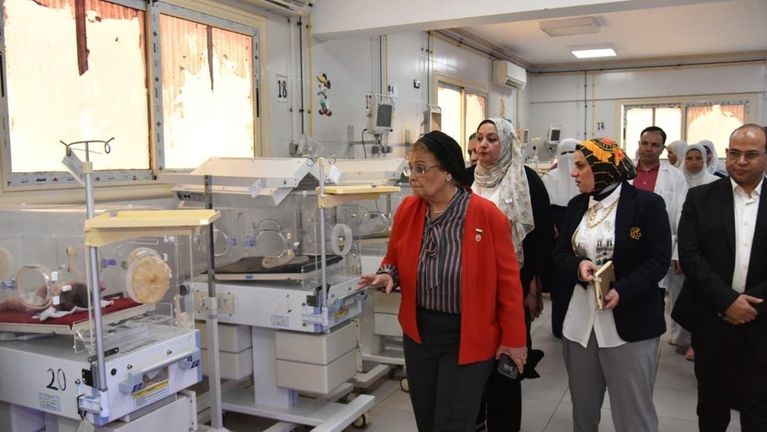 وتفقدت مستشفى المحمودية المركزي برفقة الدكتورة جاكلين عازر محافظ البحيرة، لمتابعة إنشاء مركز تميز لخدمات صحة الأم وحديثي الولادة، حيث شددت على سرعة تلافي الملاحظات الفنية والإدارية، وتطبيق الأدلة الإرشادية للولادة الآمنة، وتفعيل ممارسات «الساعة الذهبية» وملامسة الجلد للجلد، مع إعادة تنظيم وحدة حديثي الولادة حسب درجات الرعاية، وتطوير بروتوكولات استخدام المضادات الحيوية، وتأهيل الفرق الطبية خلال شهر.