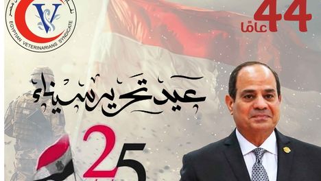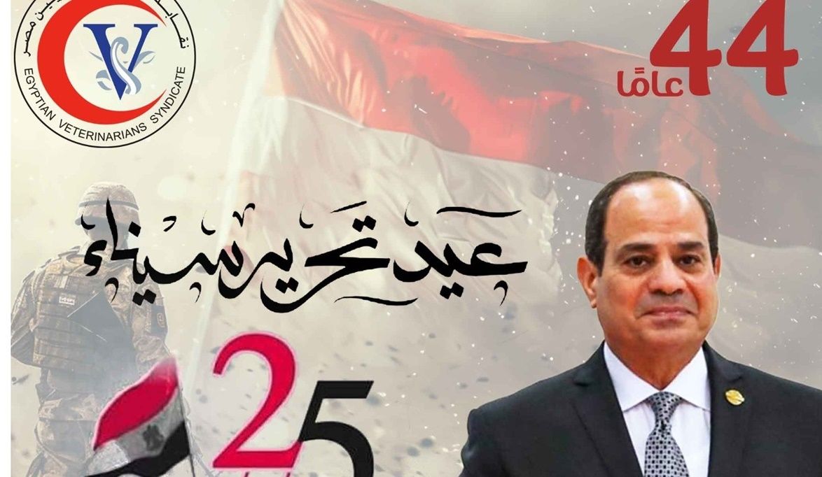 تقدم مجلس النقابة العامة للأطباء البيطريي برئاسة النقيب العام الدكتور مجدي حسن، بخالص التهنئة رئيس الجمهورية عبد الفتاح السيسي، القائد الأعلى للقوات المسلحة، وللقوات المسلحة البواسل والشعب المصري العظيم، بمناسبة ذكرى تحرير أرض سيناء.