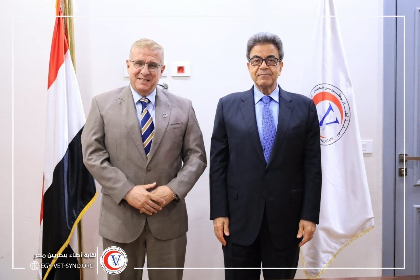 التقى الدكتور/ مجدي حسن نقيب عام الأطباء البيطريين، الدكتور/ محسن البطران رئيس لجنة الزراعة والري بمجلس الشيوخ، من خلال تشريفه لمقر النقابة العامة للأطباء البيطريين بالقاهرة؛ لبحث عدة ملفات رئيسية تخدم القطاع البيطري على النحو التالي: