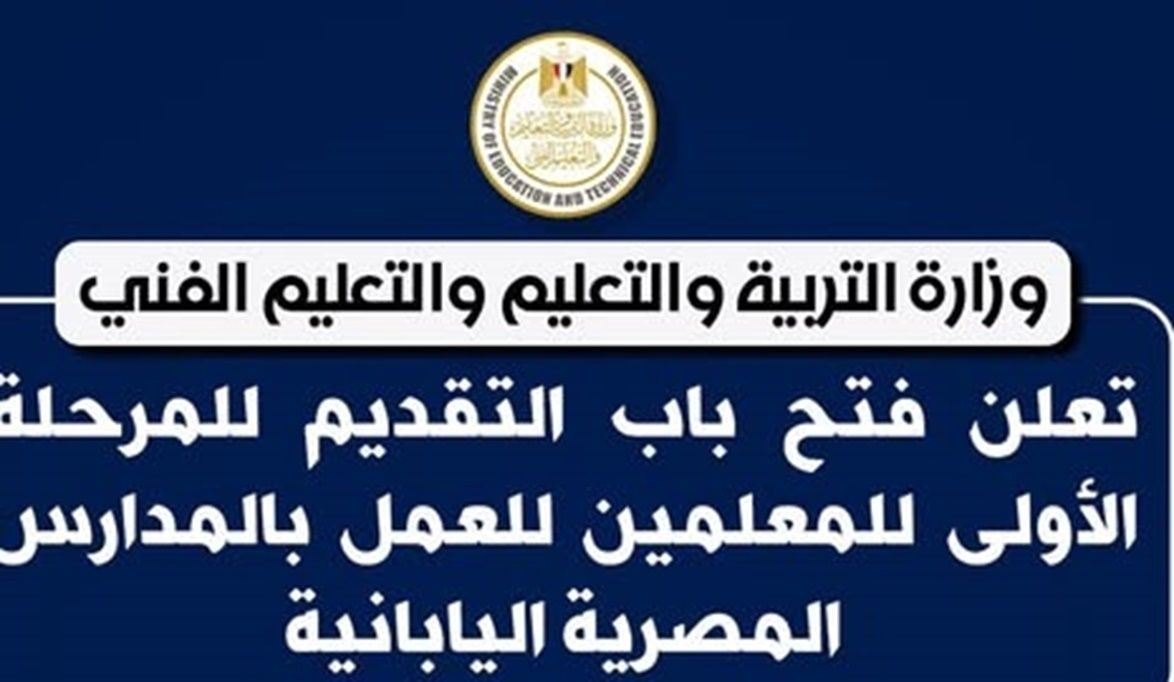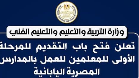 في إطار تعزيز التوسع في المدارس المصرية اليابانية، أعلنت وزارة التربية والتعليم والتعليم الفني عن فتح باب التقديم للمرحلة الأولى من التوظيف للمعلمين الراغبين في الانضمام للعمل بالمدارس المصرية اليابانية، اعتبارًا من اليوم الثلاثاء 24 مارس ولمدة شهر كامل.