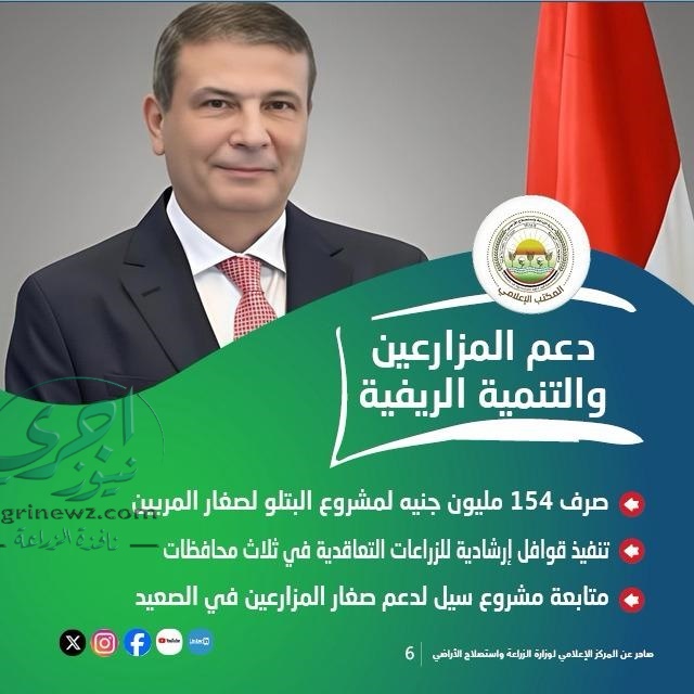 شهدت وزارة الزراعة واستصلاح الأراضي نشاطا واسعا خلال الأسبوع الماضي تنوع بين قرارات استراتيجية لتعزيز الإنتاج الزراعي وتحركات ميدانية لدعم المزارعين ومواجهة التحديات، في مقدمة القرارات وافق مجلس الوزراء على ترخيص لمركز البحوث الزراعية بتأسيس شركة أركو سيدز لإنتاج تقاوي الخضر والفاكهة بالشراكة مع جهاز مستقبل مصر والبنك الزراعي المصري والشركة الوطنية للصناعات المحمية وعدد من شركات القطاع الخاص في خطوة تستهدف توطين صناعة التقاوي وتحسين جودة الإنتاج.