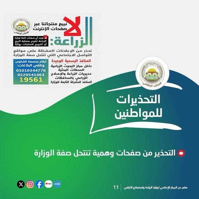 وعلى صعيد البحث العلمي والتعاون الدولي شاركت مصر في أعمال مؤتمر الفاو لإفريقيا افتراضيا كما استعرضت رؤيتها لمواجهة التحديات الغذائية في المؤتمر الإقليمي للشرق الأدنى، وفي مجال التوعية أصدرت الوزارة تحذيرا للمواطنين من صفحات وهمية تنتحل صفتها على مواقع التواصل وتروج لمنتجات غير معتمدة مؤكدة أن البيع يتم فقط عبر المنافذ الرسمية.
