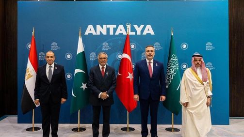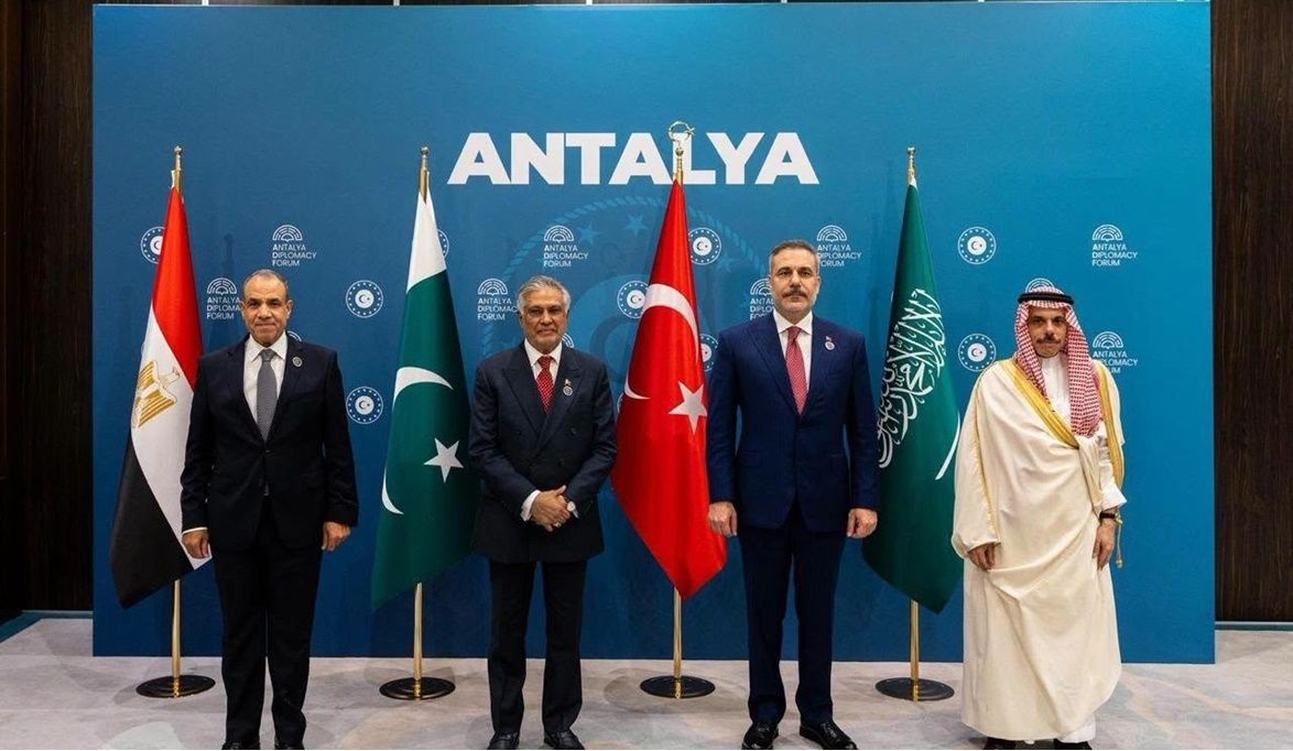 عقد د. بدر عبد العاطي وزير الخارجية والتعاون الدولي والمصريين بالخارج، و هاكان فيدان وزير خارجية الجمهورية التركية، ومحمد إسحاق دار نائب رئيس الوزراء ووزير خارجية جمهورية باكستان الإسلامية، وسمو الأمير فيصل بن فرحان وزير خارجية المملكة العربية السعودية، اجتماعا رباعيا فى مدينة أنطاليا يوم الجمعة ١٧ أبريل، وذلك على هامش "منتدى أنطاليا الدبلوماسي"، حيث تناول الوزراء مسار المفاوضات الأمريكية - الإيرانية ومستجدات الوضع الإقليمي.