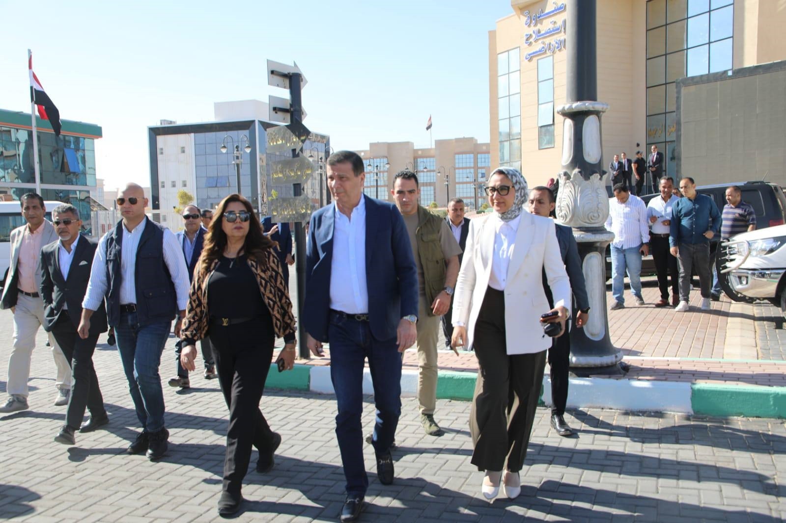 في إطار برنامج الزيارة الميدانية لمحافظة الوادي الجديد، تفقدت الدكتورة منال عوض وزيرة التنمية المحلية، والسيد علاء فاروق وزير الزراعة واستصلاح الأراضي، و اللواء دكتور محمد الزملوط محافظ الوادي الجديد، والسيدة حنان مجدى نائب المحافظ، ووفد السادة المحافظين المشارك مجمع المصالح الحكومية للخدمات الذكية شمال مدينة الخارجة، بحضور عددٍ من رؤساء الهيئات العامة و القيادات التنفيذية والشعبية بالمحافظة.