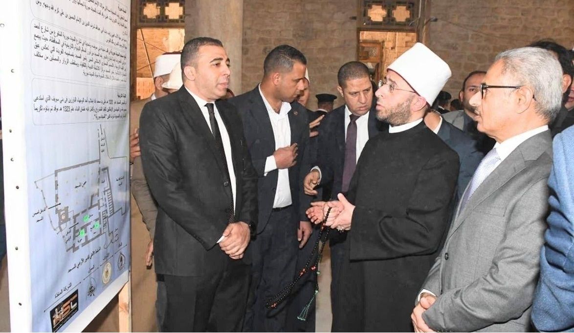واطّلع وزير الأوقاف ومحافظ بني سويف على نسب التنفيذ ومراحل العمل المختلفة، ووجه الوزير بسرعة الانتهاء من الأعمال وفق أعلى معايير الجودة، بما يضمن الحفاظ على الطابع المعماري للمسجد، ويُسهم في تهيئة الأجواء المناسبة للعبادة.