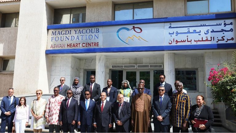 وكان فى إستقبالهم جراح القلب العالمى السير مجدى يعقوب، الذى رحب بضيوف أسوان، معرباً عن تقديره لهذه الزيارة التى تعكس إهتمام المجتمع الدولى بالمركز ودوره الرائد فى خدمة الإنسانية، وخاصة أن مركز أسوان أصبح منارة عالمية فى مجالات الطب والبحث العلمى، وواجهة مشرفة لمصر فى تقديم الخدمات الطبية المجانية بأعلى معايير الجودة.