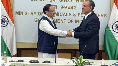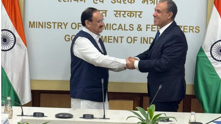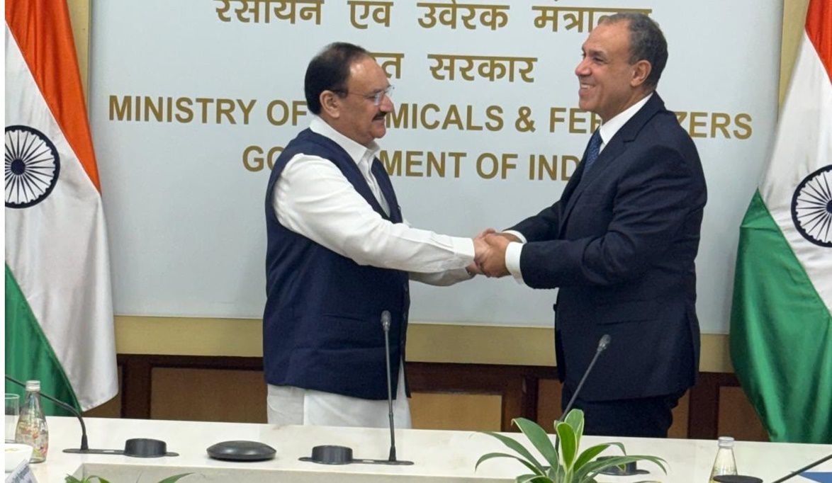 التقى د. بدر عبد العاطي وزير الخارجية والهجرة وشئون المصريين بالخارج بـ جاغات براكاش نادا وزير الكيماويات والاسمدة الهندي، يوم الخميس ١٦ أكتوبر في نيودلهي.