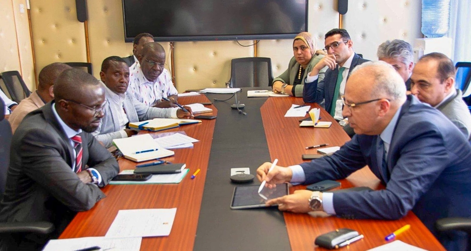 كما تم خلال الاجتماع التأكيد على أهمية برامج التدريب وبناء القدرات للكوادر الفنية الكينية، بما يضمن تحسين كفاءة إدارة المياه في كينيا وتعزيز قدرتها في مواجهة تحديات المناخ ، حيث أكد الدكتور سويلم على أهمية تبادل الخبرات بين البلدين، مشيراً لاستعداد مصر الكامل لتقديم الدعم للجانب الكيني في مجال التدريب وبناء القدرات من خلال الدورات التدريبية الموجهة للمعنيين بقطاع المياه من خلال "مركز التدريب الإفريقي للمياه والتكيف المناخي"PACWA ، والذى يقدم مجموعة من الدورات التدريبية للأشقاء من الدول الإفريقية في مجالات متعددة تشمل إدارة المياه، أنظمة الإنذار المبكر، التنبؤ بالفيضانات، ونظم الري الحديثة، لتعزيز قدراتهم الفنية ودعم جهود التنمية المستدامة في القارة.