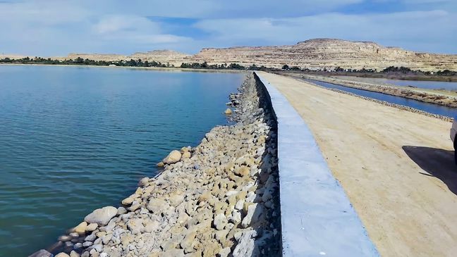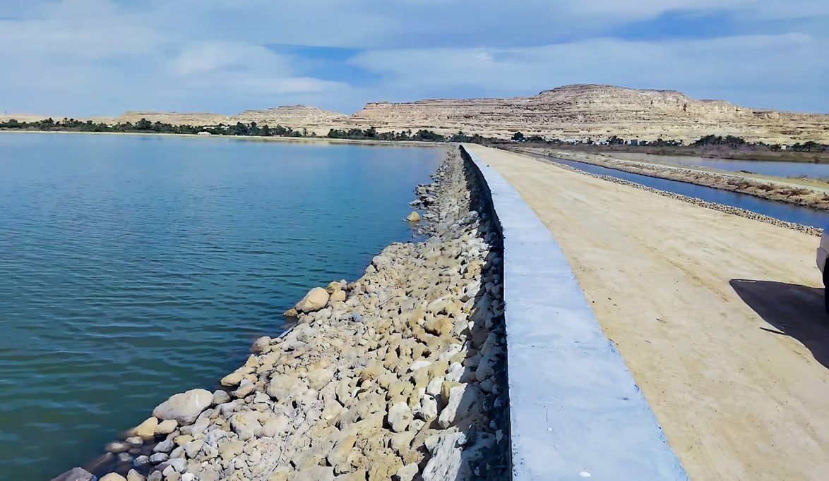 كما تم الإنتهاء من حفر عدد ١٢ بئر عميق لإنتاج المياه العذبة من خزان الحجر الرملي النوبي للخلط مع مياه الآبار السطحية، وفي المقابل تم غلق العديد من الآبار الجوفية والتى كانت تسحب المياه من الخزان الجوفى السطحي بشكل جائر، كما تم تنفيذ أعمال لتقوية وتعلية وتدعيم عدد (٤) جسور حول بحيرة سيوه بغرض تقليل الأضرار الناتجة عن إرتفاع مناسيب المياه خلال السنوات الماضية والتى أثرت سلباً على بعض الأراضى الزراعية والمبانى والمنشآت السياحية المطلة على البحيرة .