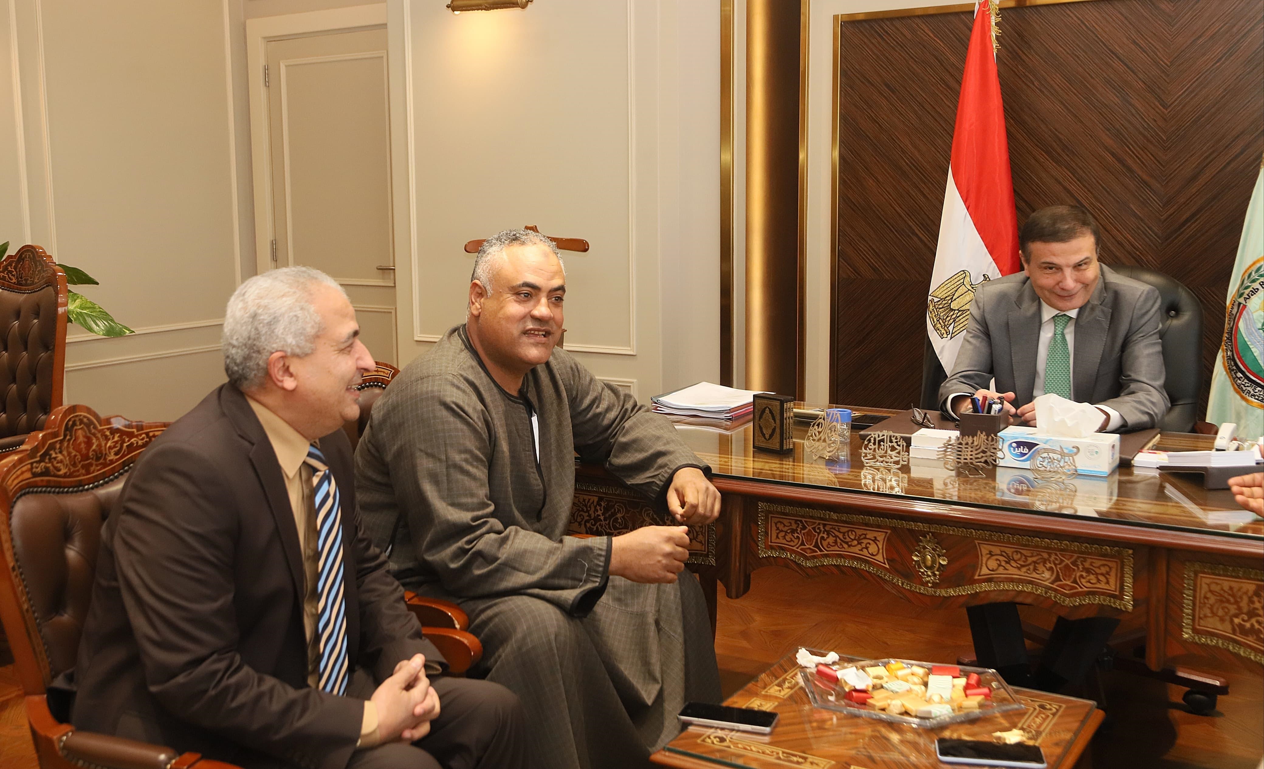 علاء فاروق وزير الزراعة واستصلاح الأراضي استقبل اليوم كل من السيد / صدام أبو حسين والسيد/النوبي أبو اللوز ممثلي الفلاحين والمزارعين بوجه قبلي واستعرض معهم الجهود التي تبذلها الوزارة لدعم المزراعين سواء من خلال المدراس الإرشادية والقوافل البيطرية المنتشرة في جميع محافظات الجمهورية والتى ينفذها مركز البحوث الزراعية وبحوث الصحراء وقطاع الارشاد الزراعي وقطاع الخدمات والمتابعة وكذلك الهيئة العامة للخدمات البيطرية ومعاهد الثروة الحيوانية.