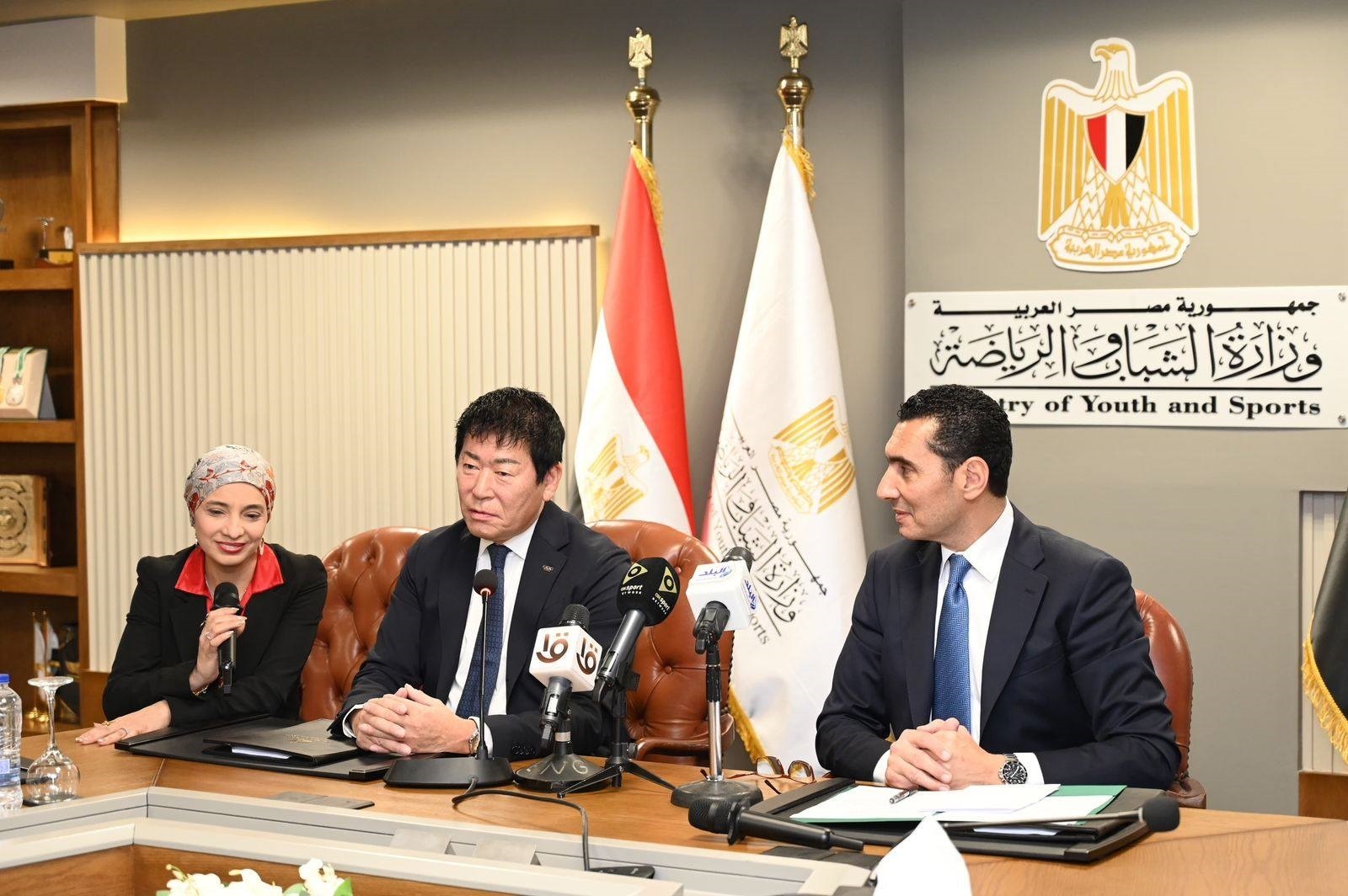 ومن جانبه أعرب السيد مورينابي واتانابي، رئيس الاتحاد الدولي للجمباز، عن خالص شكره وتقديره لوزير الشباب والرياضة المصري على الدعوة الكريمة، مشيداً بالعلاقة الوطيدة التي تربط الاتحاد بمصر، والتي شهدت طفرة في استضافة الأنشطة الدولية منذ انطلاق كؤوس العالم للجمباز على أرضها قبل ست سنوات. كما أبدى إعجابه الكبير بالتطور الملموس الذي تشهده الدولة المصرية في الفترة الحالية.