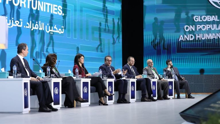 ومن جانبها، أكدت الدكتورة رانيا المشاط، وزيرة التخطيط والتنمية الاقتصادية والتعاون الدولي، أن الدولة المصرية تعتبر صحة المواطن ركيزة استراتيجية للنمو الاقتصادي والتنمية المستدامة وليست مجرد خدمة، مشيرة إلى الحرص على موائمة الأهداف الصحية مع أولويات التنمية لتأكيد أن كل هدف في قطاع الصحة له أثر مباشر على المجتمع والاقتصاد والبيئة، وكذا تعزيز التكامل بين كافة القطاعات (التعليم، والبيئة، الحماية الاجتماعية، الوعي الثقافي)، الأمر الذي يجعل كل تدخل صحي لا يعمل بمعزل، بل يرتبط مباشرة بتحسين نتائج القطاعات الأخرى، وبما يساهم في تحقيق الأهداف التنموية للدولة.
