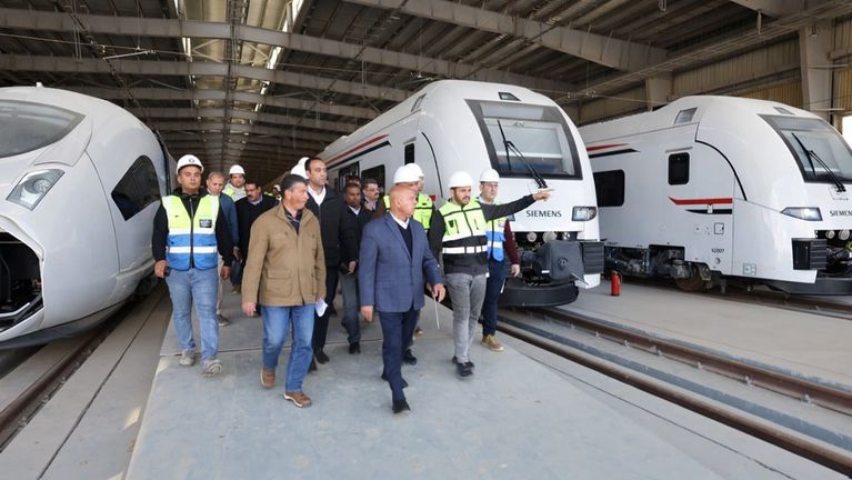 في إطار توجيهات الرئيس عبد الفتاح السيسي، قام الفريق مهندس كامل الوزير، يرافقه المهندس وجدي رضوان واللواء طارق جويلي، بجولة تفقدية لمتابعة أعمال إنشاء ورشة الخط الأول للقطار الكهربائي السريع (السخنة – العلمين – مطروح) بحدائق أكتوبر على مساحة 578 فدانًا، والتي تعد من أكبر مراكز صيانة وتشغيل القطارات في المنطقة.